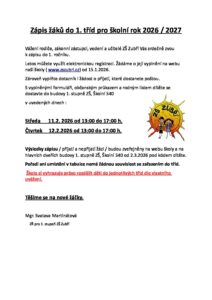 škola s rozšířenou výukou tělesné výchovy – školní rok 2025/26