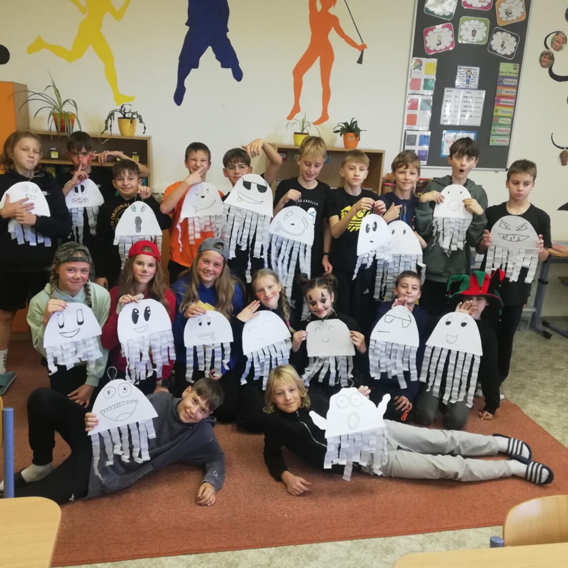 Kde se učí angličtina, tam je sto chutí pustit se výukovou stezkou děsu, pavouků a dýní. A na ní je možné počítat, vyrábět, vyprávět příběhy ve dvou jazycích, studovat netopýry a pavouky a klidně i programovat. Do několika převlečených tříd můžete klíčovou dírkou nahlédnout tady.