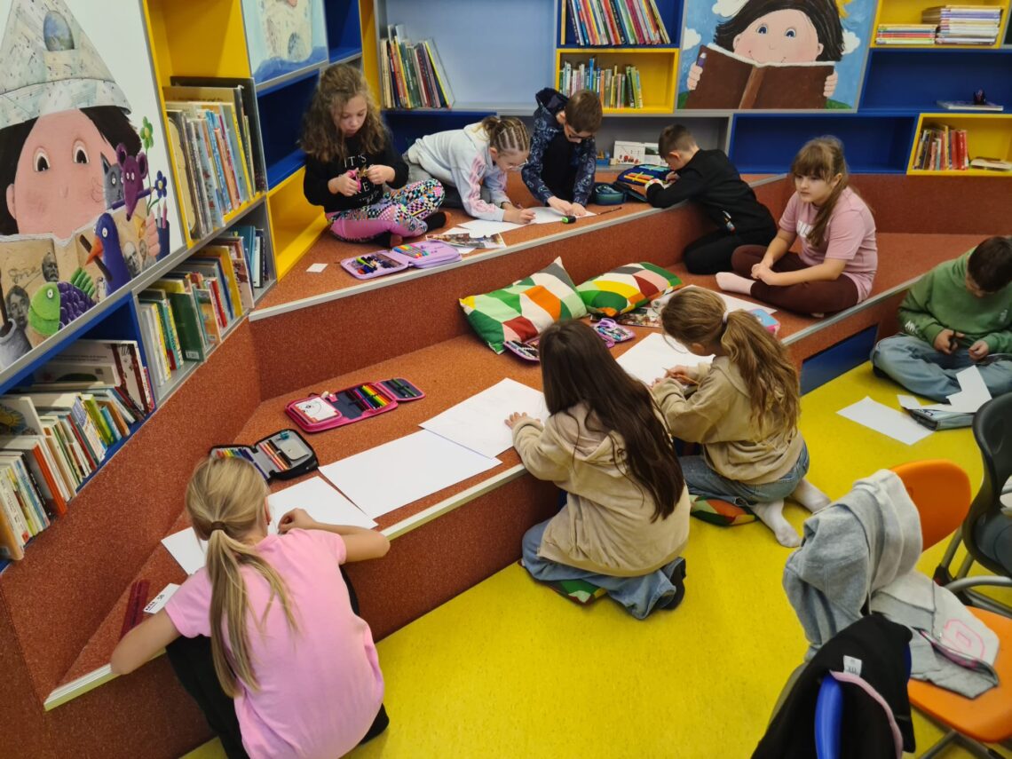 3. B prožila barevné dopoledne v naší knihovně. Čtenáři luštili záhady ilustrací a grafiky a bádali nad atraktivitou různých stylů a múz malířů. Bibiana zapískala na prsty a třeťáci pod vlivem její „melodie“ umělecky zpracovali své zážitky. Děkujeme Veronice za skvěle vedenou lekci; uchváceni prostředím si někteří odnášeli čtivo i domů. Vypravte se za nimi tudy.