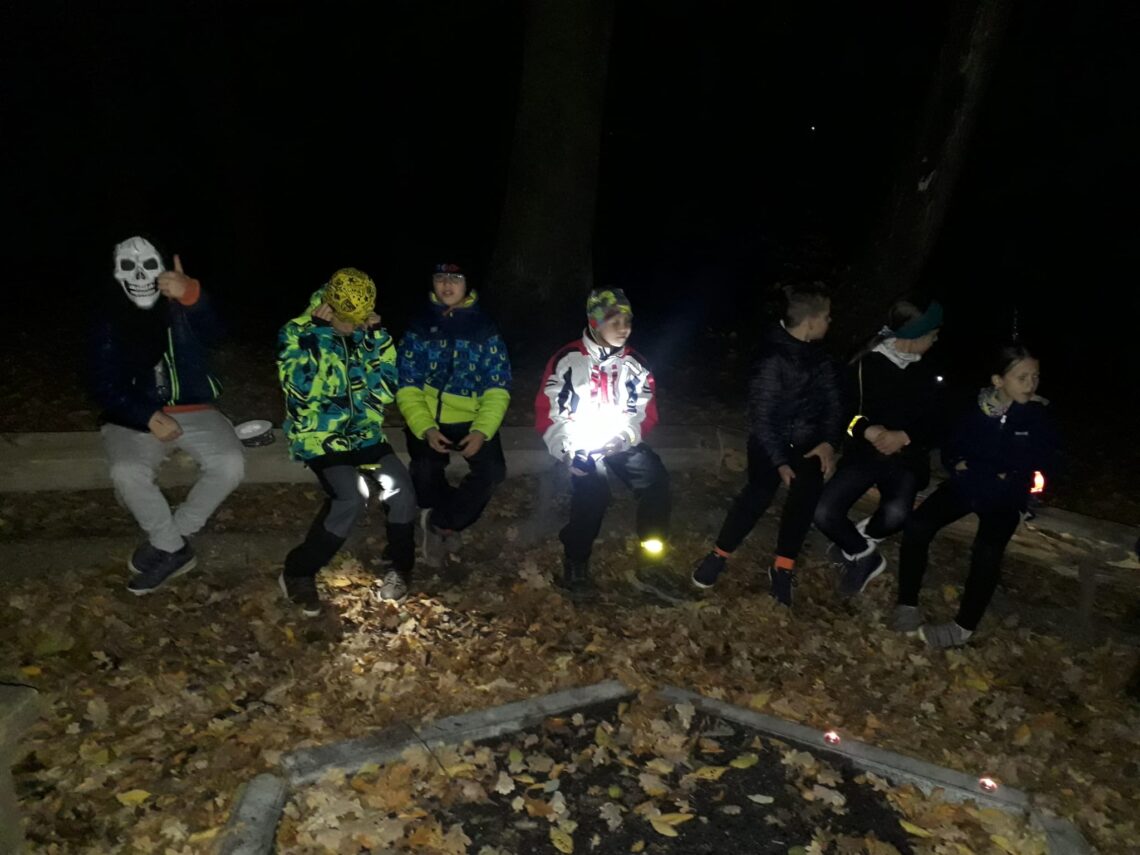 Ve čtvrtek, hned po setmění, vykročila 5.B do temných zuberských uliček. Už samotná cesta do Březovce byla dobrodružná. Což teprve, když se u plápolající svíčky začaly vyprávět strašidelné historky! A navíc zpáteční trasa vedla okolo hřbitova. Bojte se tady.