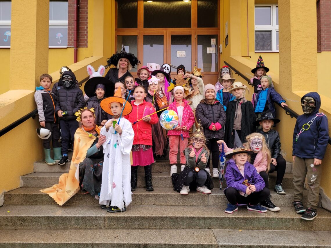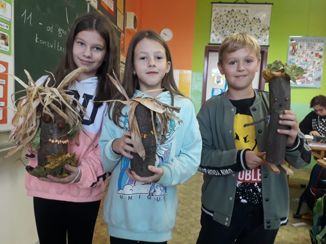 Opatrovníci něžných nálad podzimu se nezalekli předpovědi počasí ani pobrekávající oblohy a slétli se u naší školy. Jako zázrakem v 16:16 pláč ustal a naše stvoření z 2. tříd se mohla pustit do práce. Shlukla se po malých skupinkách, rozsvítila svá světýlka a vkročila do tmy Březovce. Laskavé bludičky jim za splněné úkoly a rozveselení v temnotě ukazovaly cestu, nezvedené příšerky vykukovaly z různých zákoutí a divoce skřehotaly, zatímco odvaha střídavě slábla a zase se v kruhu spřízněnců nevídaně rozpínala. Stezkou bahna a obav prošli nakonec všichni. Po tanci, veršování, počítání, luštění a silových kouscích zpečetili své snažení podpisy ve svitu slavnostních svíček a za pochvalného mumlání královny podzimu. Můžeme…