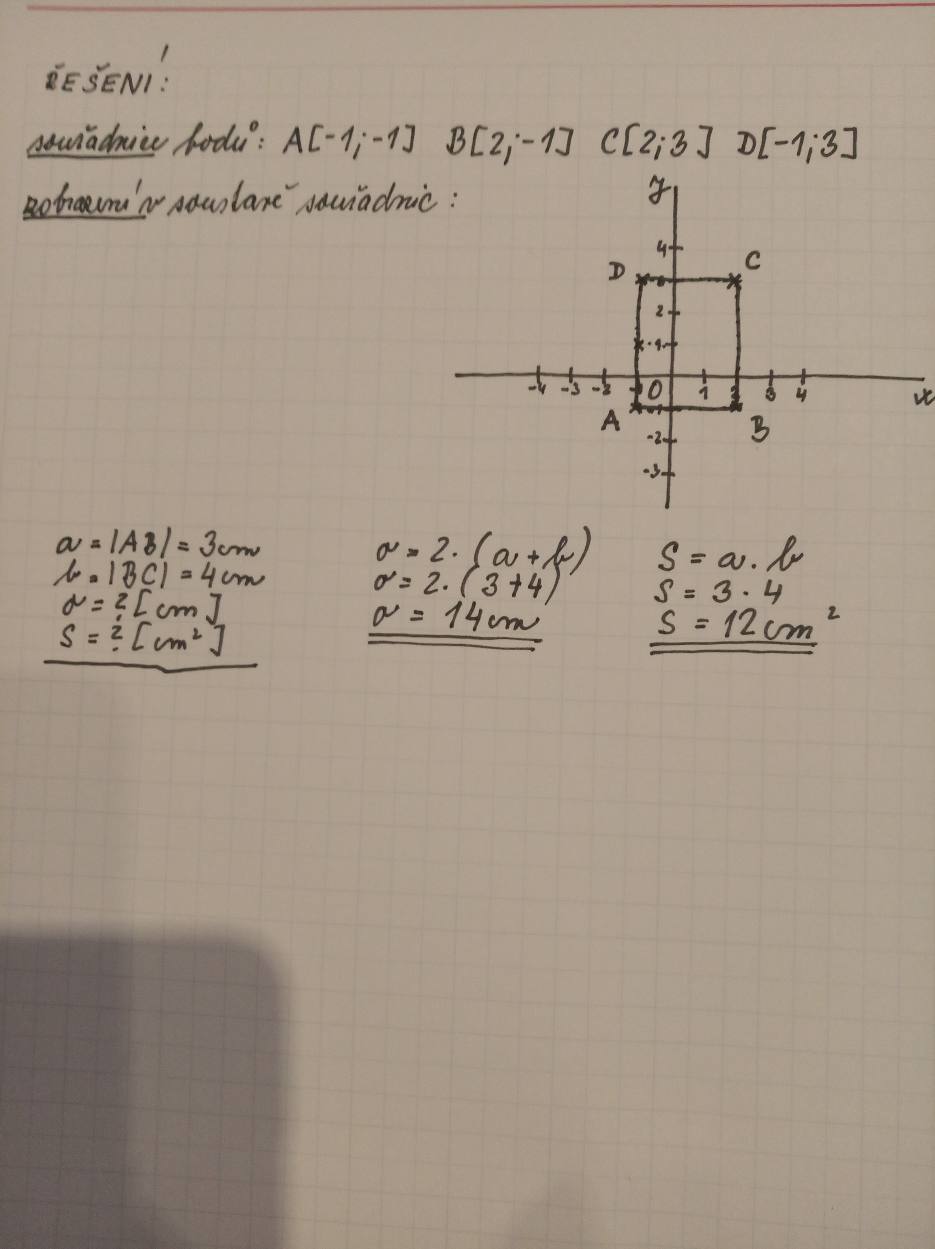 V pravoúhlé soustavě souřadnic sestroj čtyřúhelník ABCD. Následně