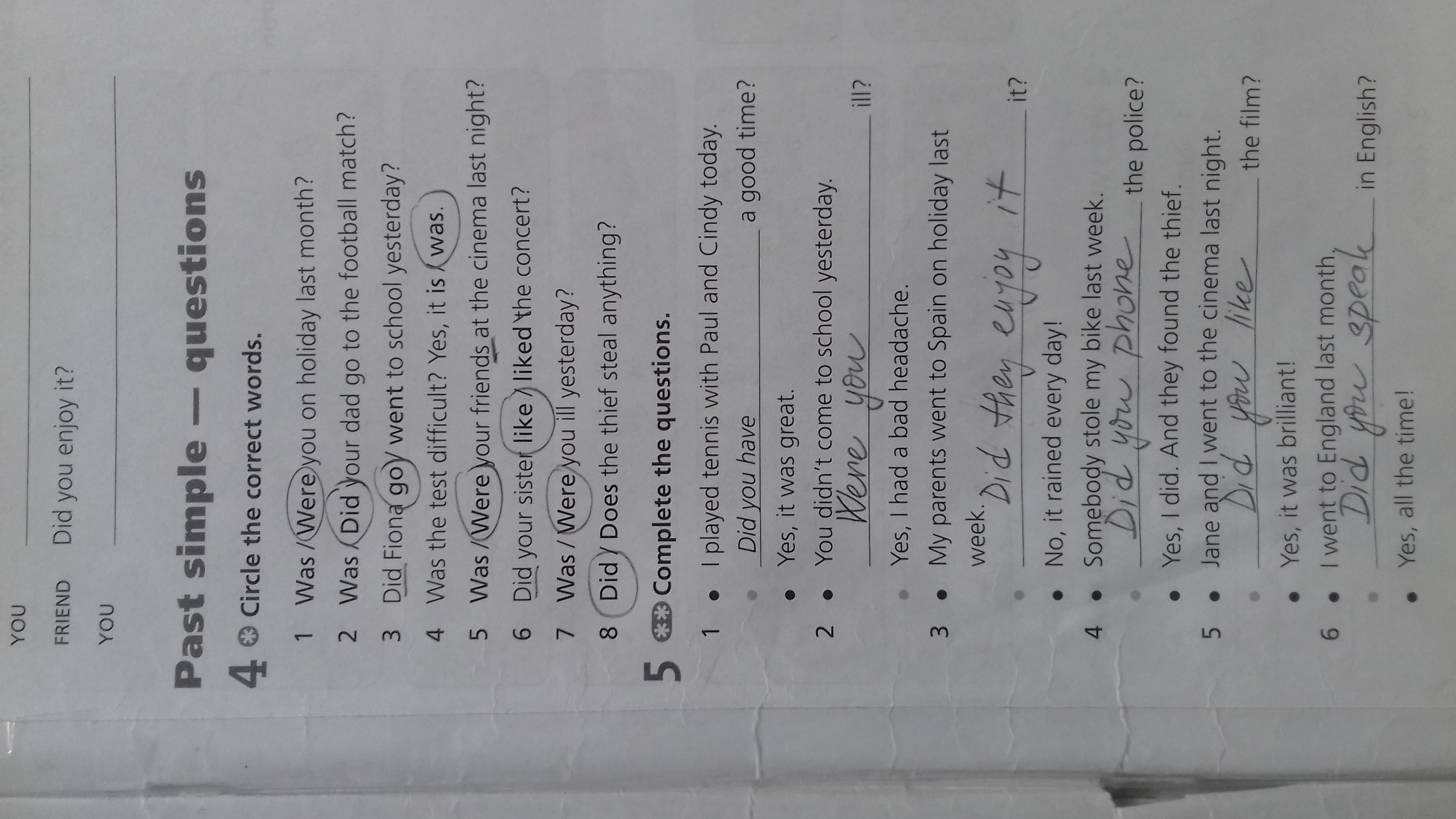 Učebnice str. 11 cv. 3, 4 – zopakuj si tvoření otázky v minulém čase prostém (přehledné tabulky najdeš také na str 68 v prac. sešitě, je to oddíl 1.6 – 1.9)