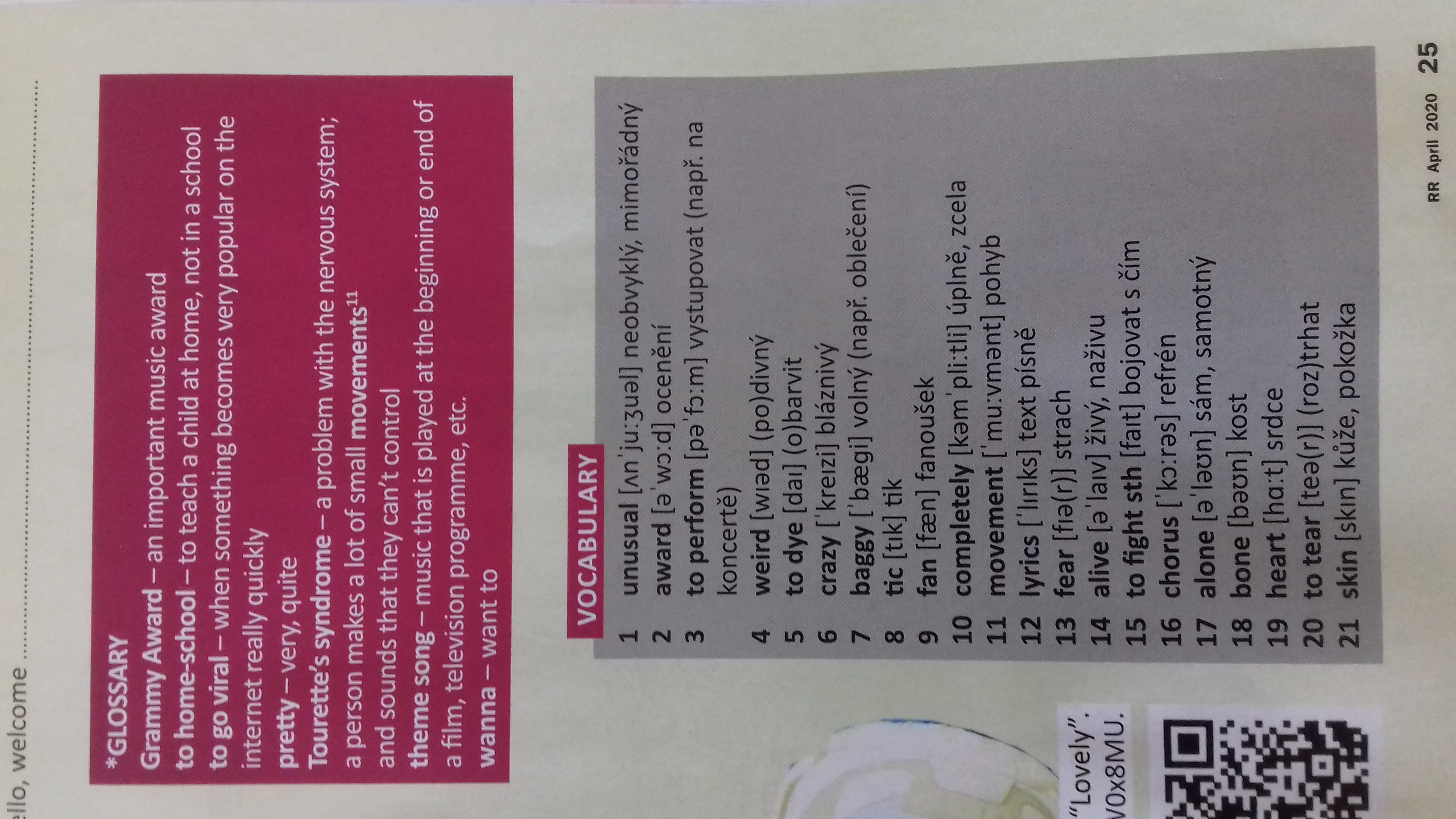 1. Zapiš si a nauč se slovíčka Unit 1 Culture