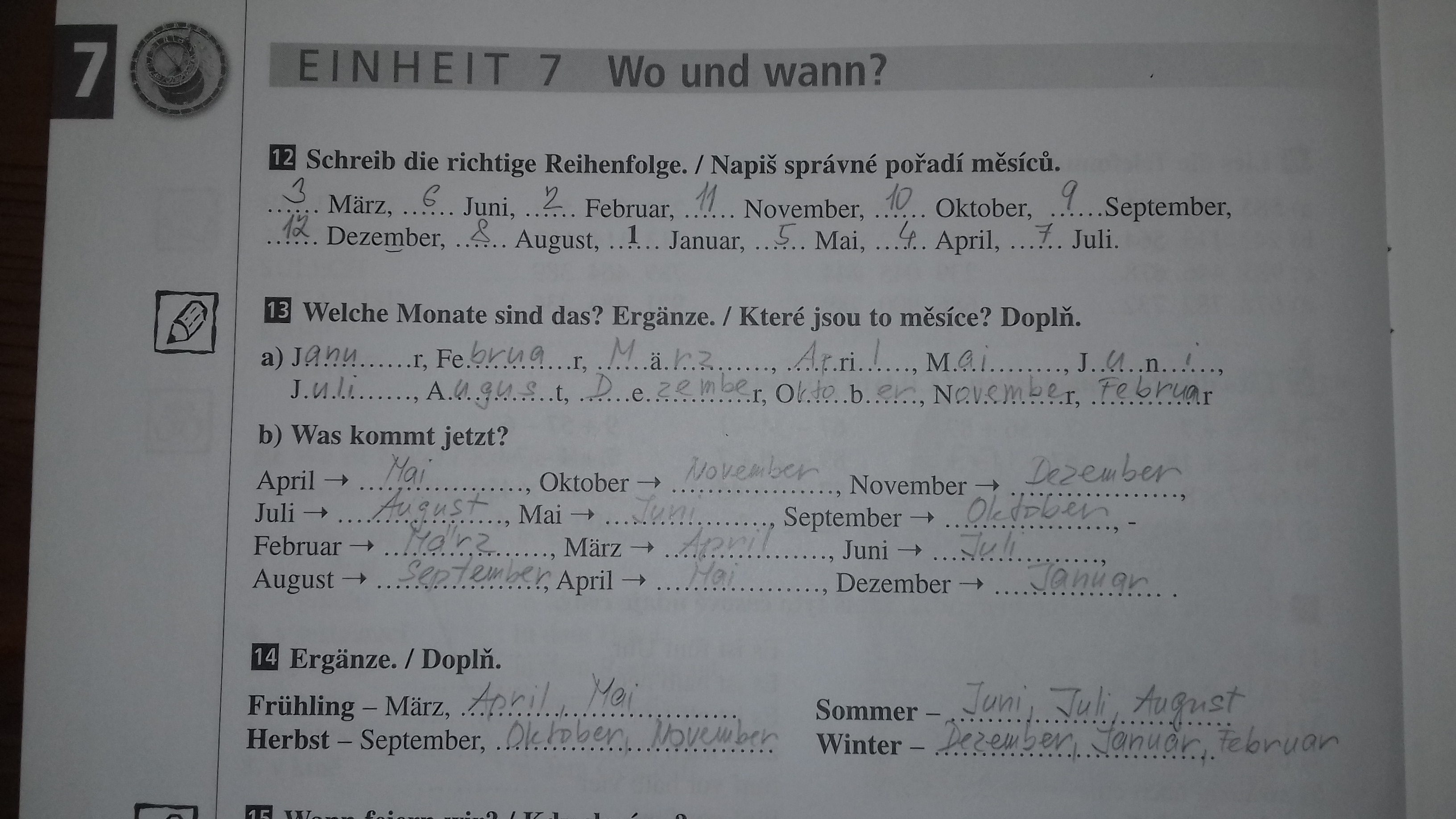 Nauč se pomocí slovníku v pracovním sešitě názvy měsíců a ročních období. Vypracuj v pracovním sešitě na str. 62 cvičení 12, 13 a 14.