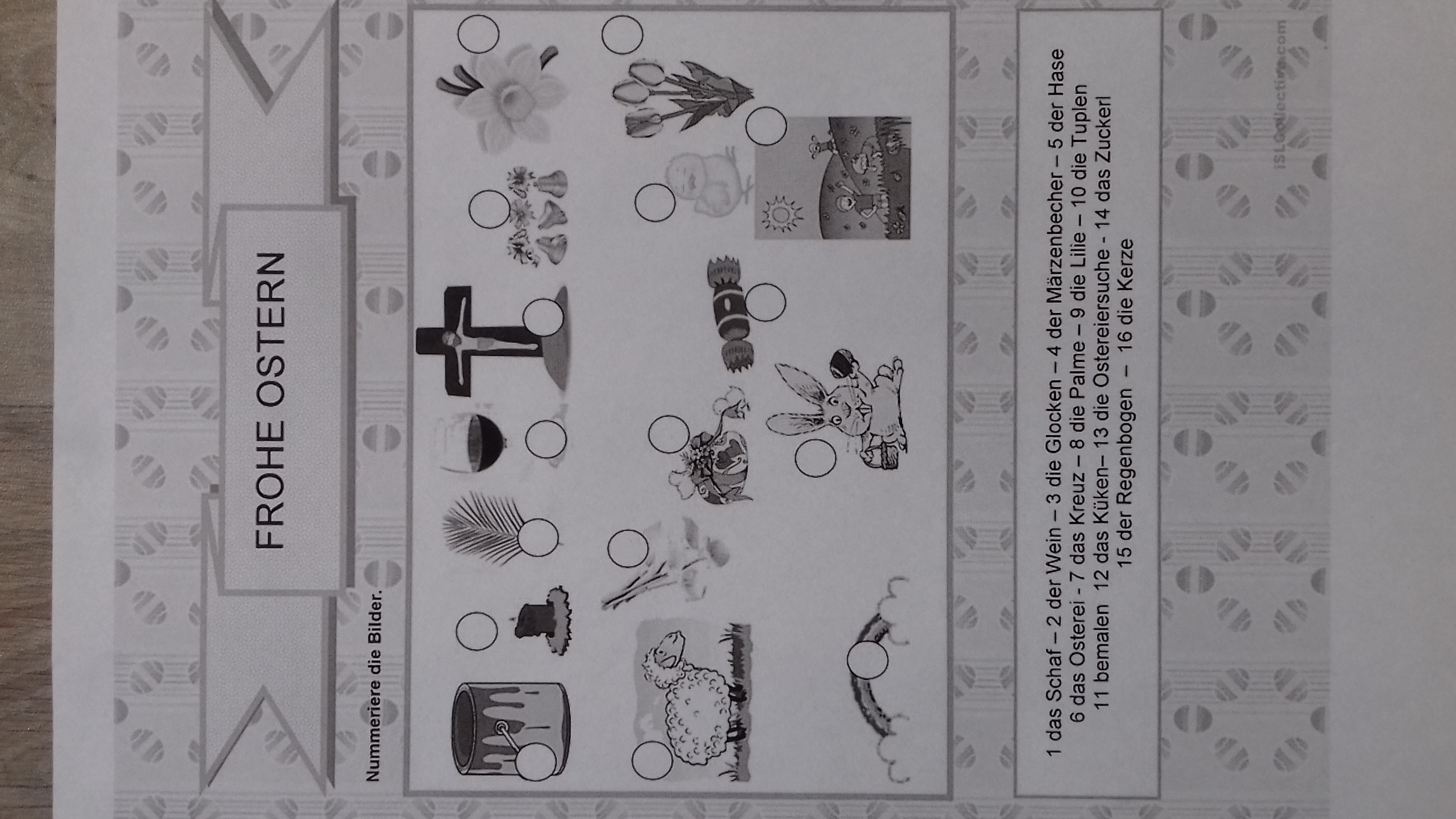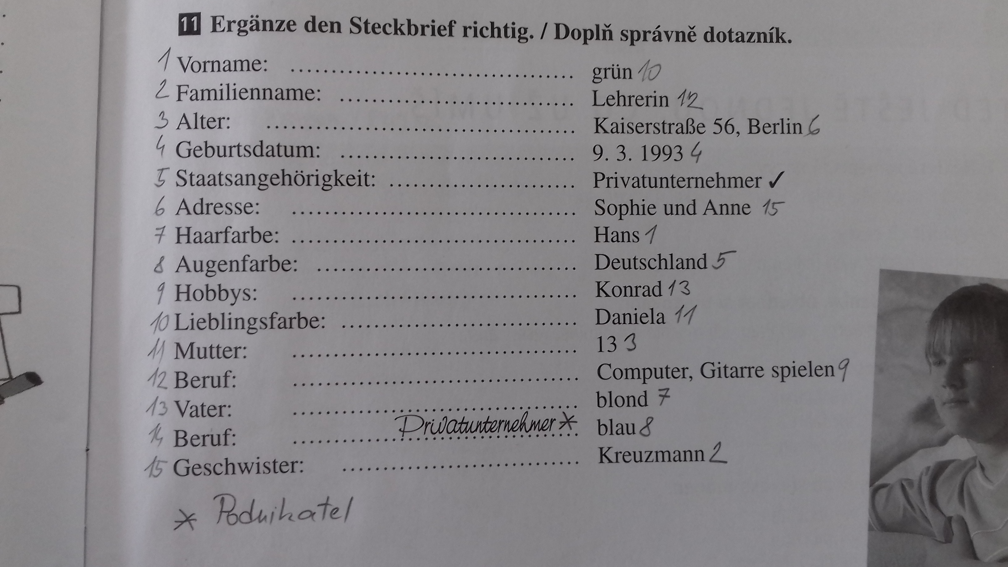Nauč se podle slovníčku str.67 řadové číslovky 1. – 5. (Výslovnost je: erste, cvajte, drite, fírte, fynfte)