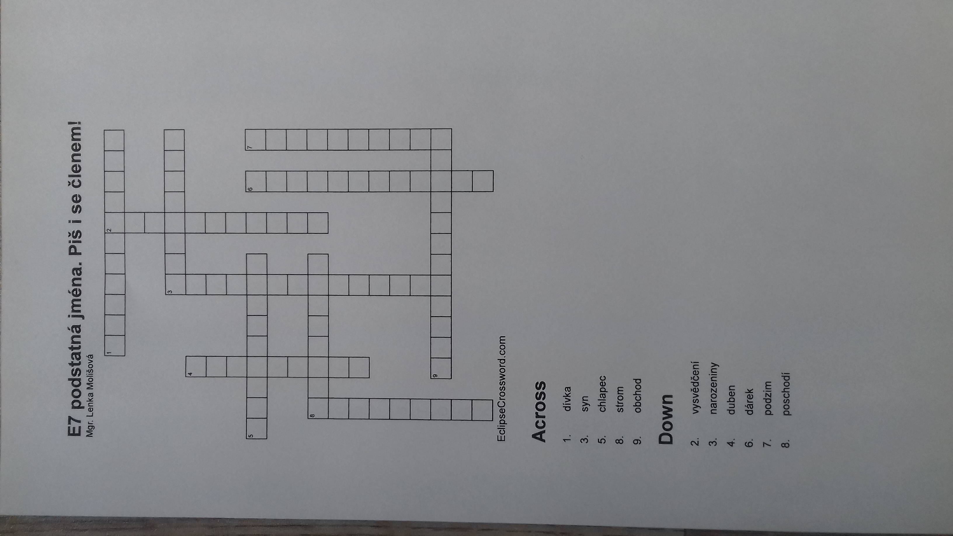 - Křížovka na podstatná jména a členy lekce 7:http://www.zszubri.cz/wp-content/uploads/2020/03/20200409_125637.jpg