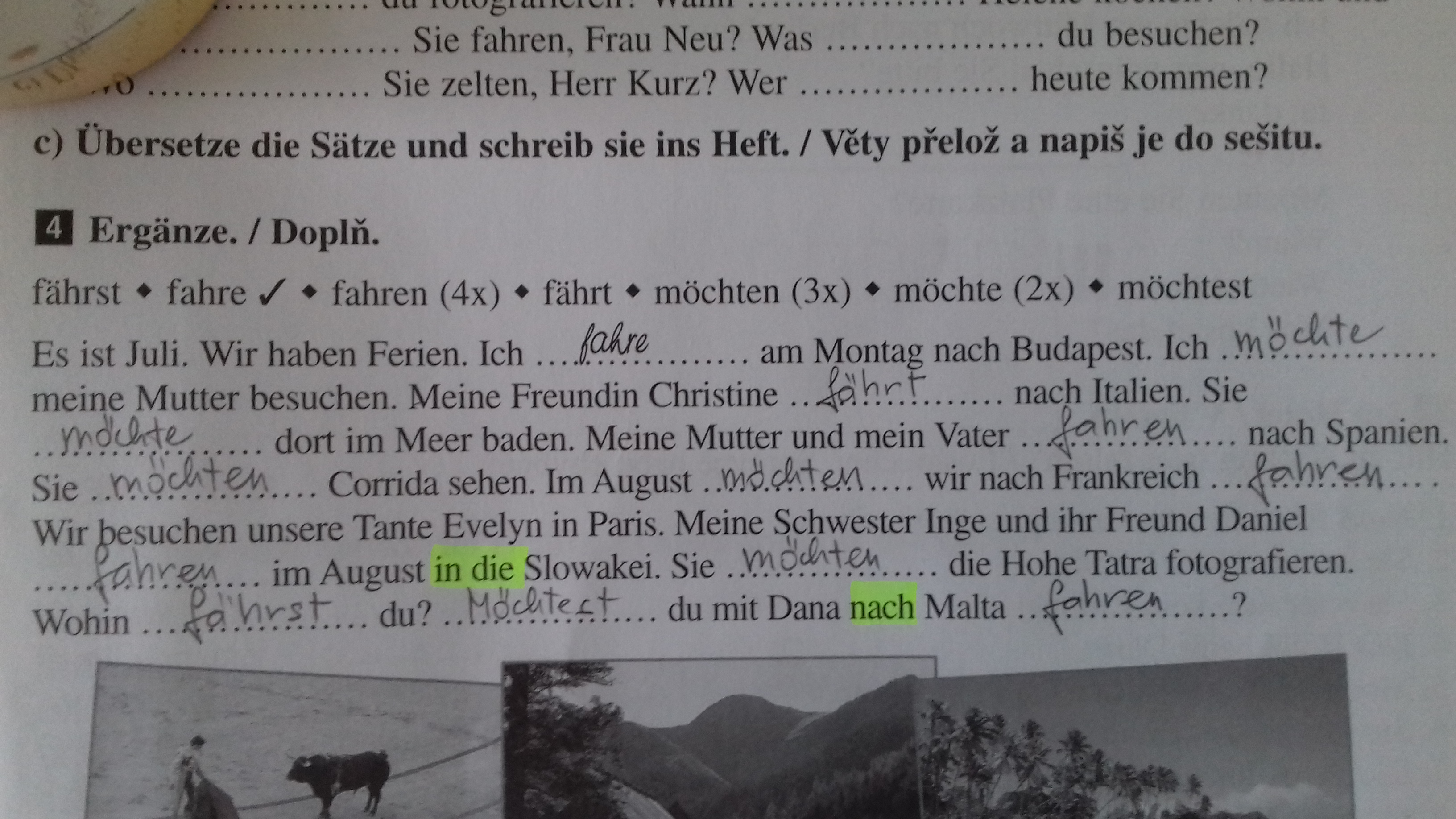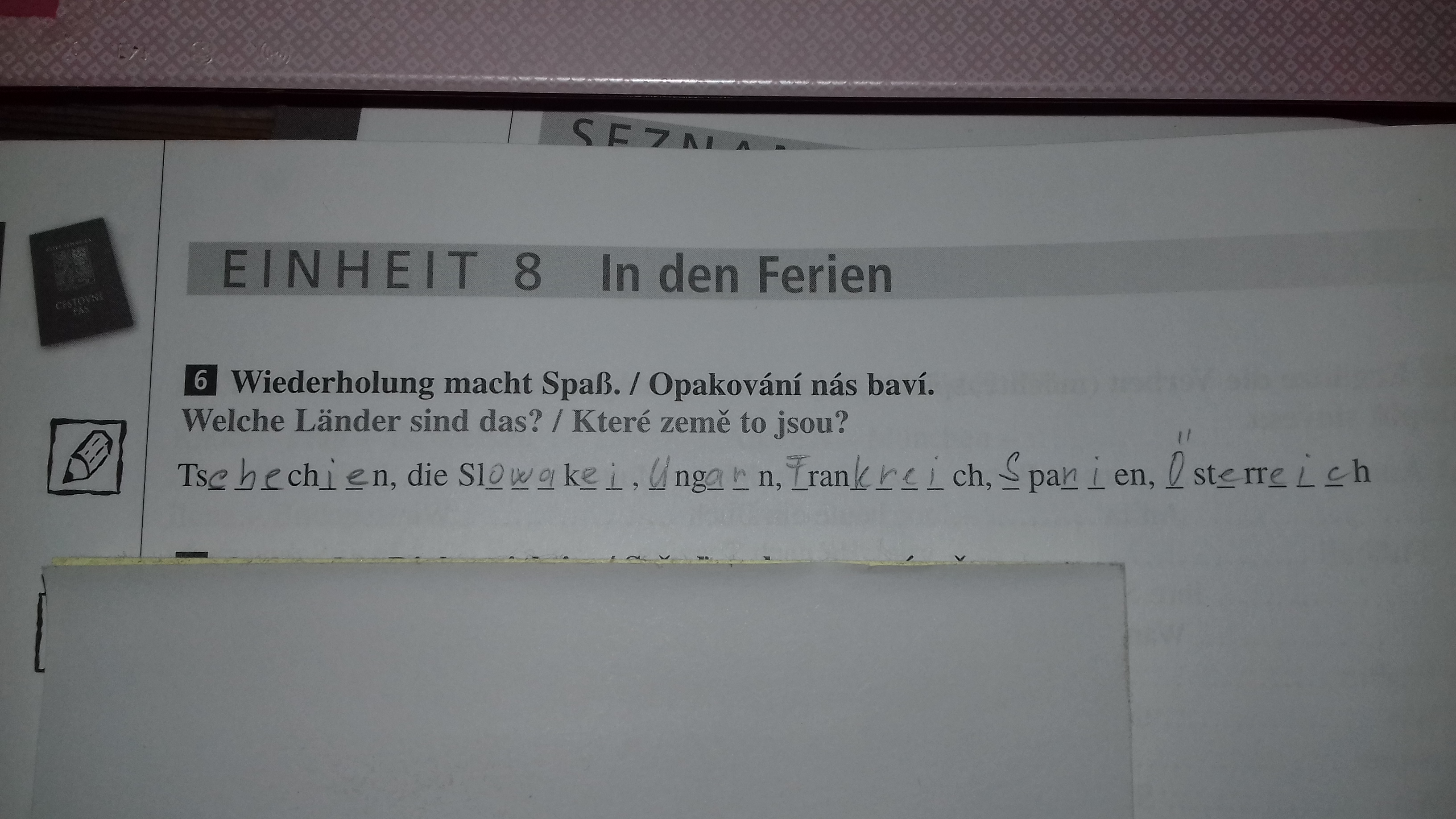 Začínáme poslední lekci 1. dílu učebnice, která má příznačná název: In den Ferien (O prázdninách). V této lekci budeme cestovat, naučíme se názvy mnoha zemí. Většina zemí se používá bez členu, budeme se ale učit i ě výjimky: die Slowakei a die Schweiz – zde člen používáme. Takže např. ich wohne in Tschechien. ALE Ich wohne in der Schweiz.