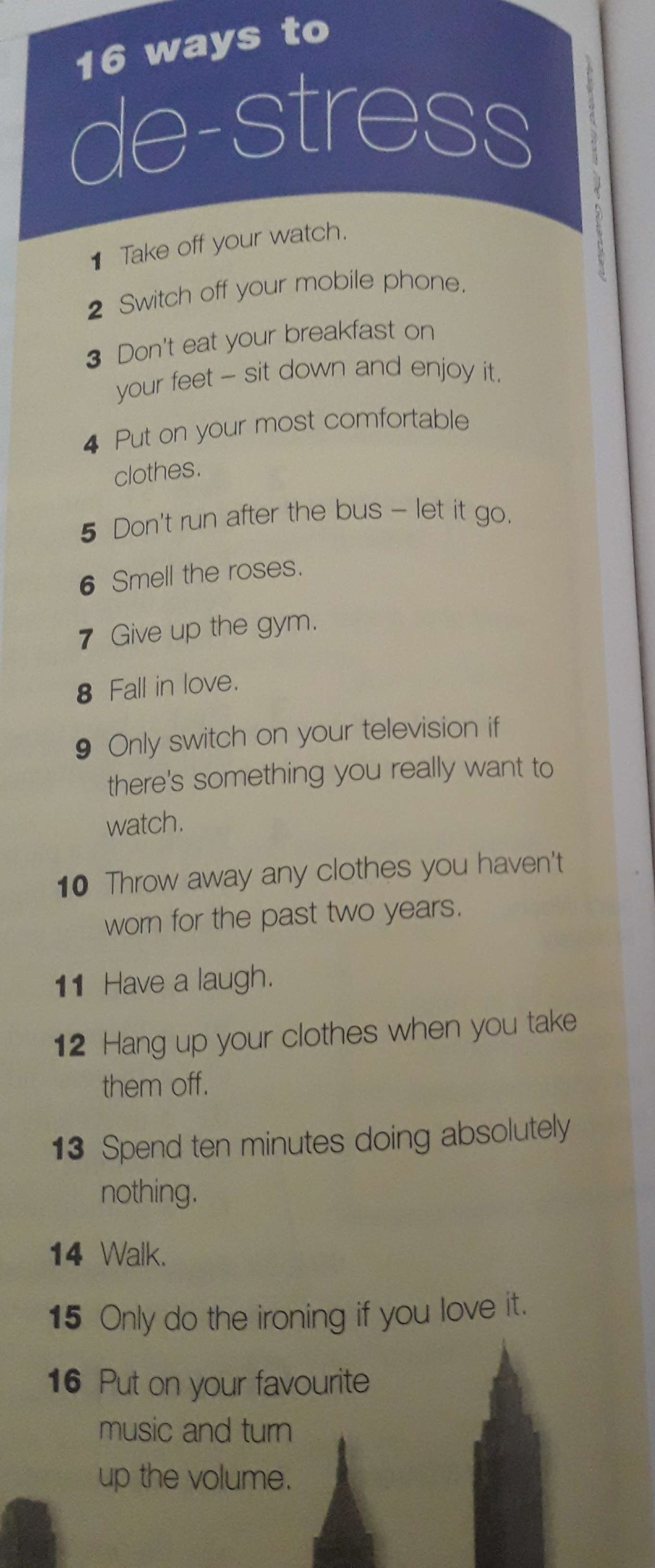 Today we´re going to have an easier lesson, just reading and two little exercices in your book, so you can focus more on your priorities in studying. Wish you all good nerves. 🙂