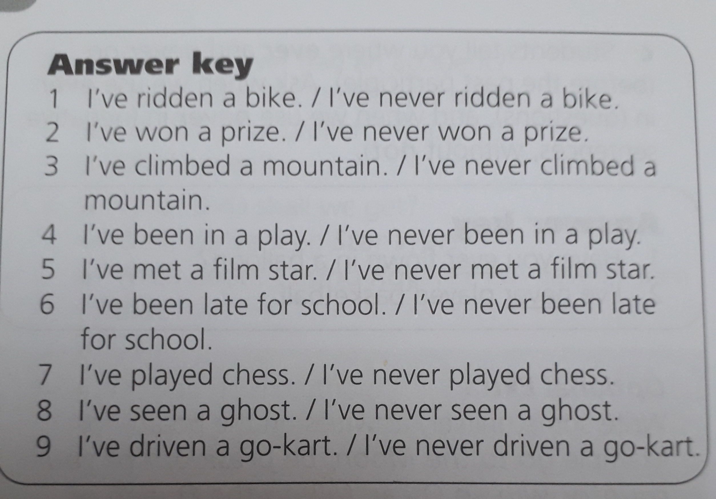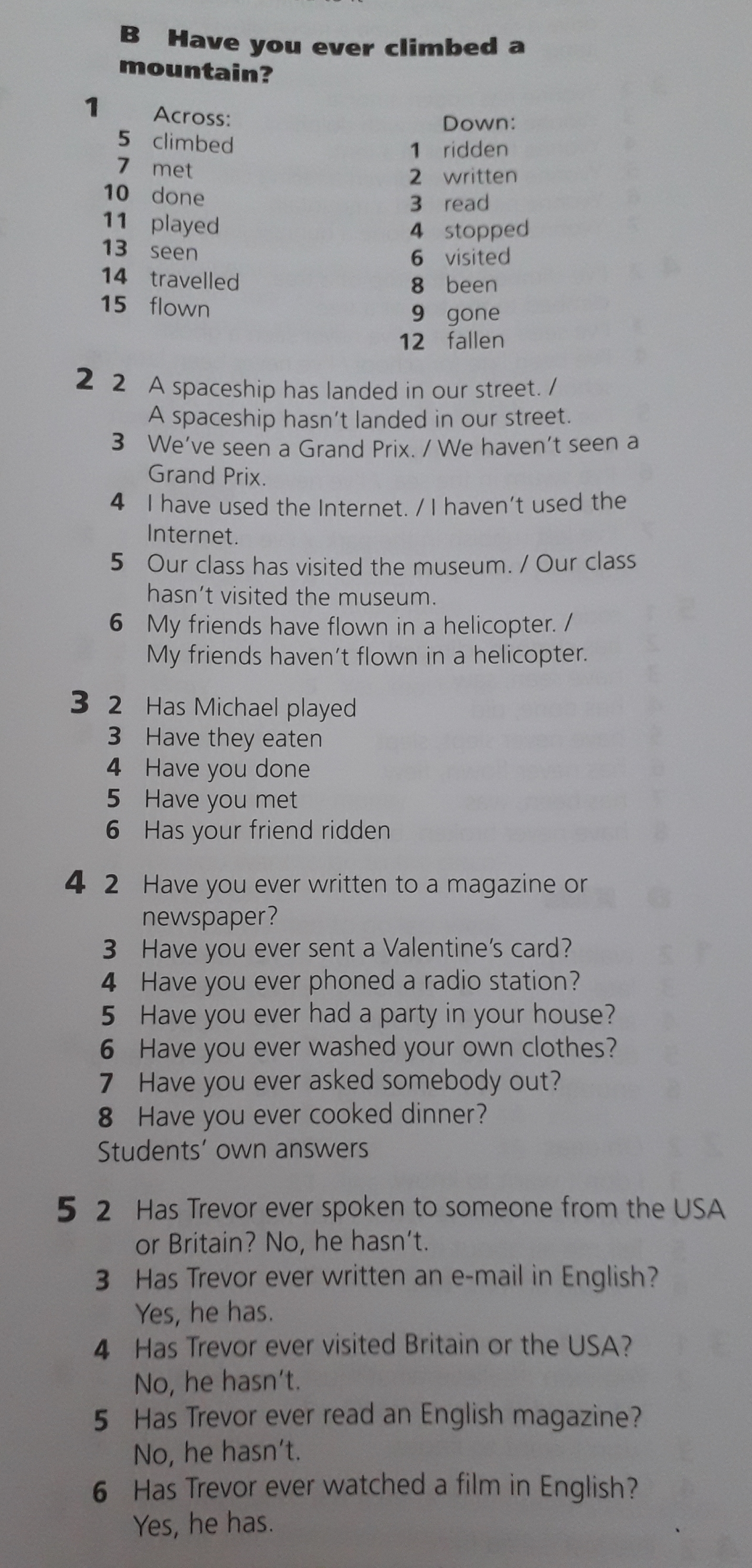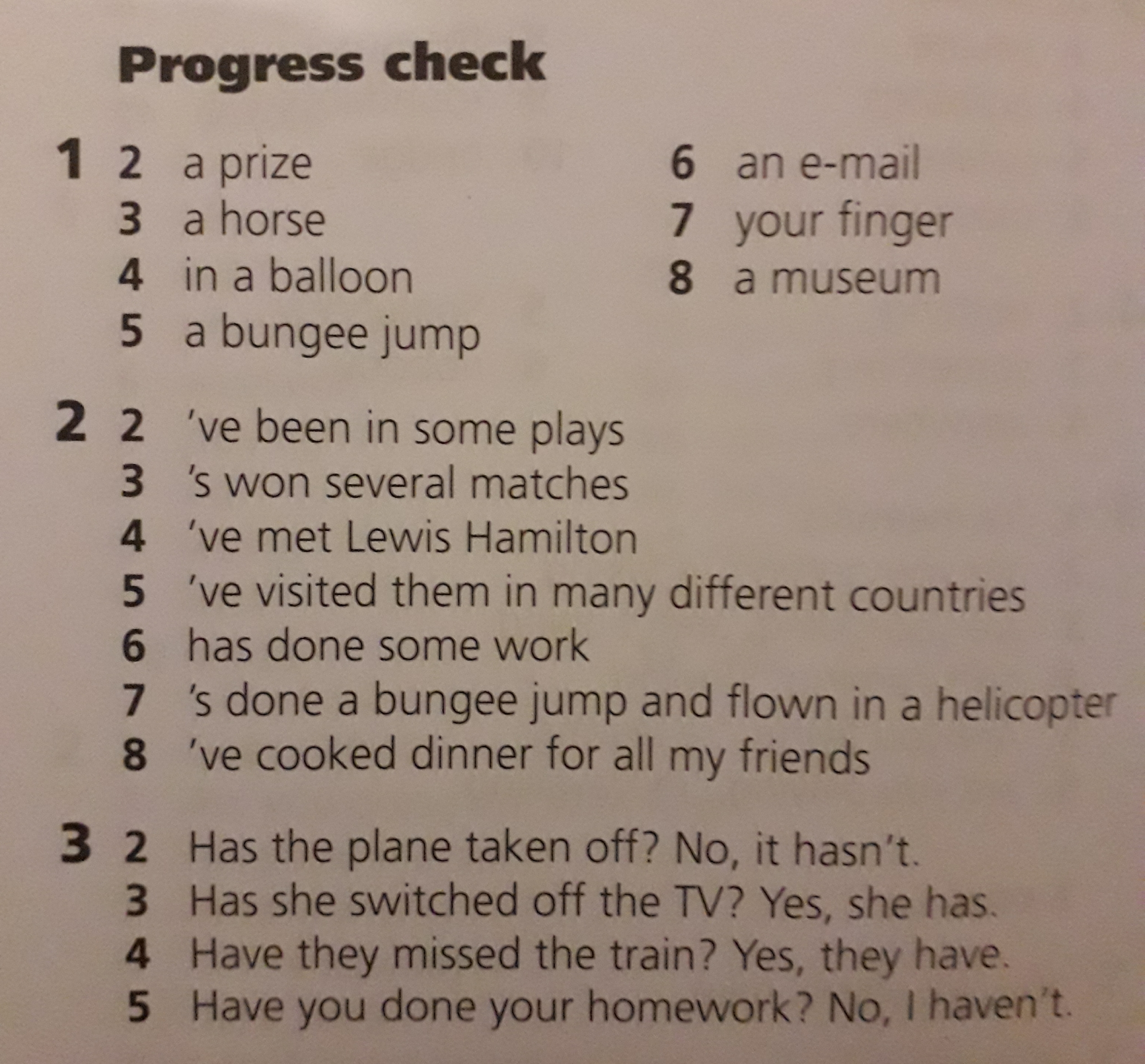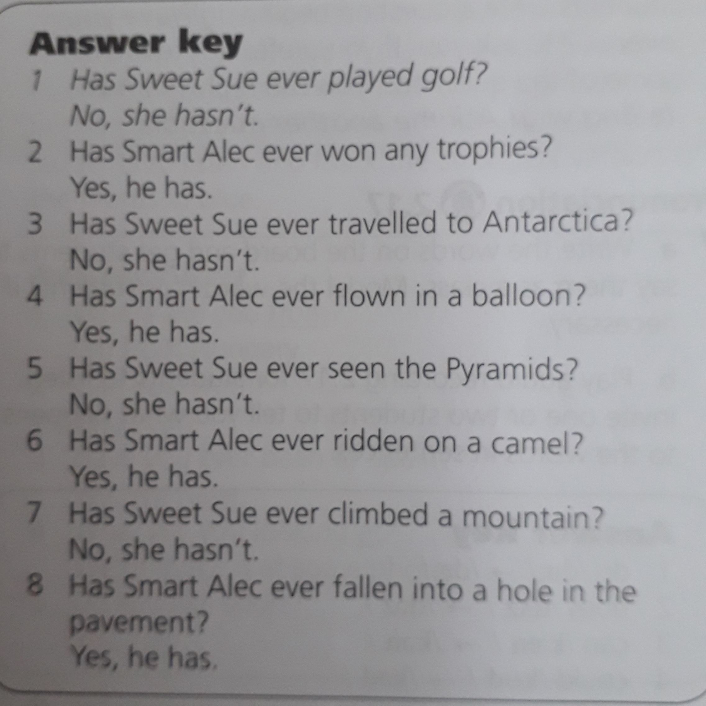 - A jelikož se v této lekci procvičuje zejména otázka, ale také kladná a záporná věta v předpřítomném čase (Present perfect), podívejte se znovu na základy jeho tvoření do Pracovního sešitu na str. 72, kde máte přehledně tabulky 5.1 až 5.5 i s povídáním.