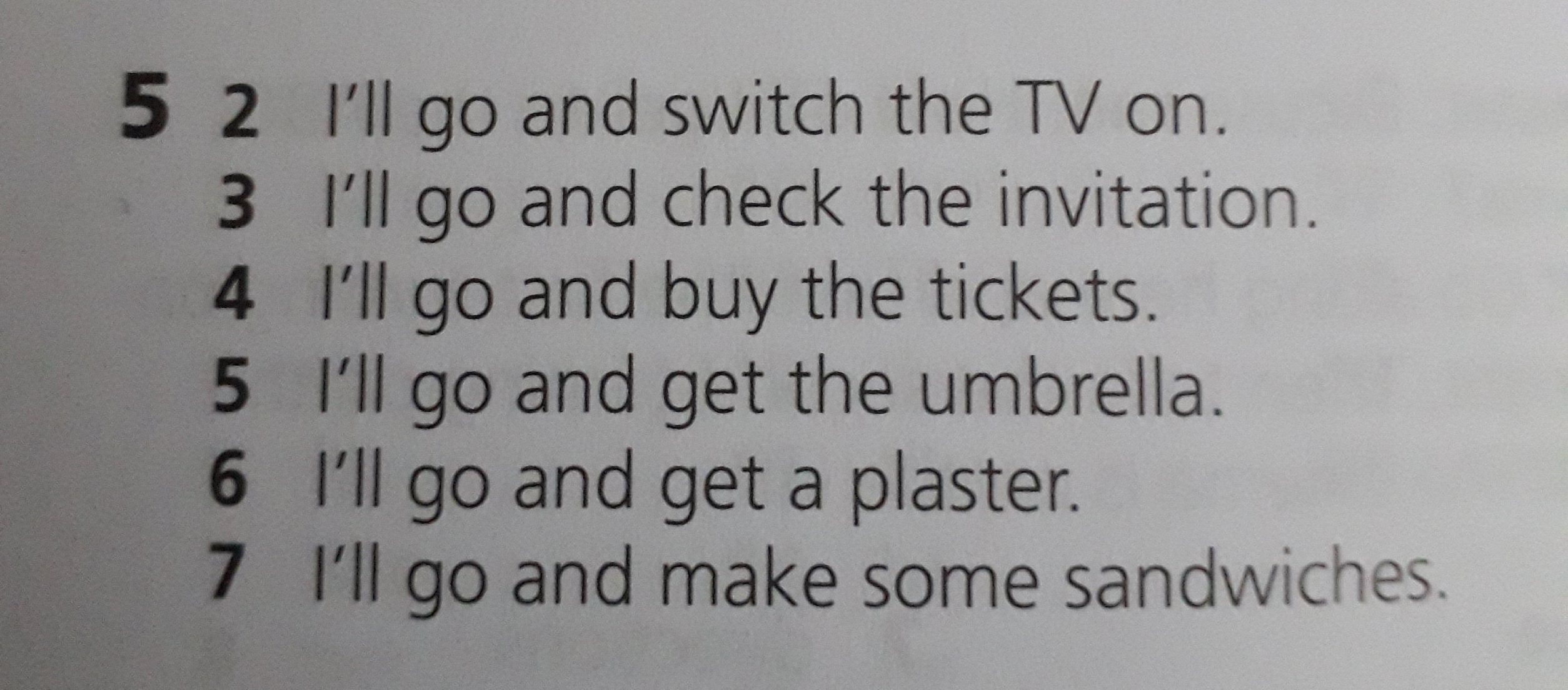 - Vypracujte si cvičení 1 a 2 na str. 50 a cv. 5 na str. 51 v Pracovním sešitě. (Vážou se k rozhovoru. 1 – doplníte vhodně výrazy z rámečku do vět, 2 – správně seřadíte slova ve frázích, 5 – vytvoříte v každé situaci vhodné doplnění fráze Půjdu a … vhodným slovesem z rámečku) Ofoťte a pošlete mi ke zhlédnutí, co se Vám podařilo. Pokud by něco nešlo, nezoufejte, správné řešení všeho obdržíte příští týden.