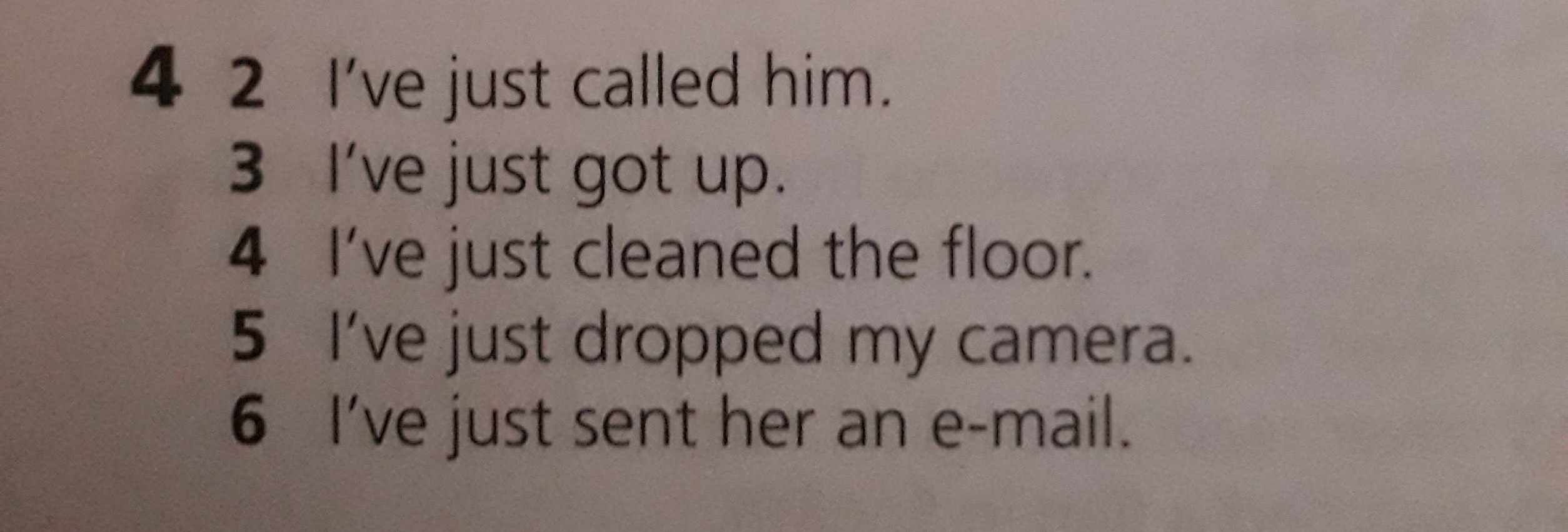- Pošlete mi Vaše věty ze cv. 5b na str. 63 v učebnici. Zadání je jednoduché, tvořte věty v předpřítomném čase, s použitím just (=právě někdo něco udělal), dle modrého vzoru.