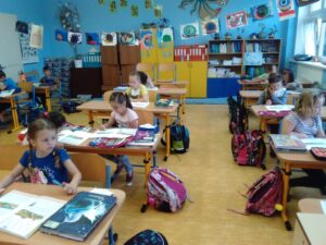 Připravíme krabice, výkresy, papuče a ručníky k cestě domů. Kdo přinese sešity ke kontrole, dostane je zpět v září:).