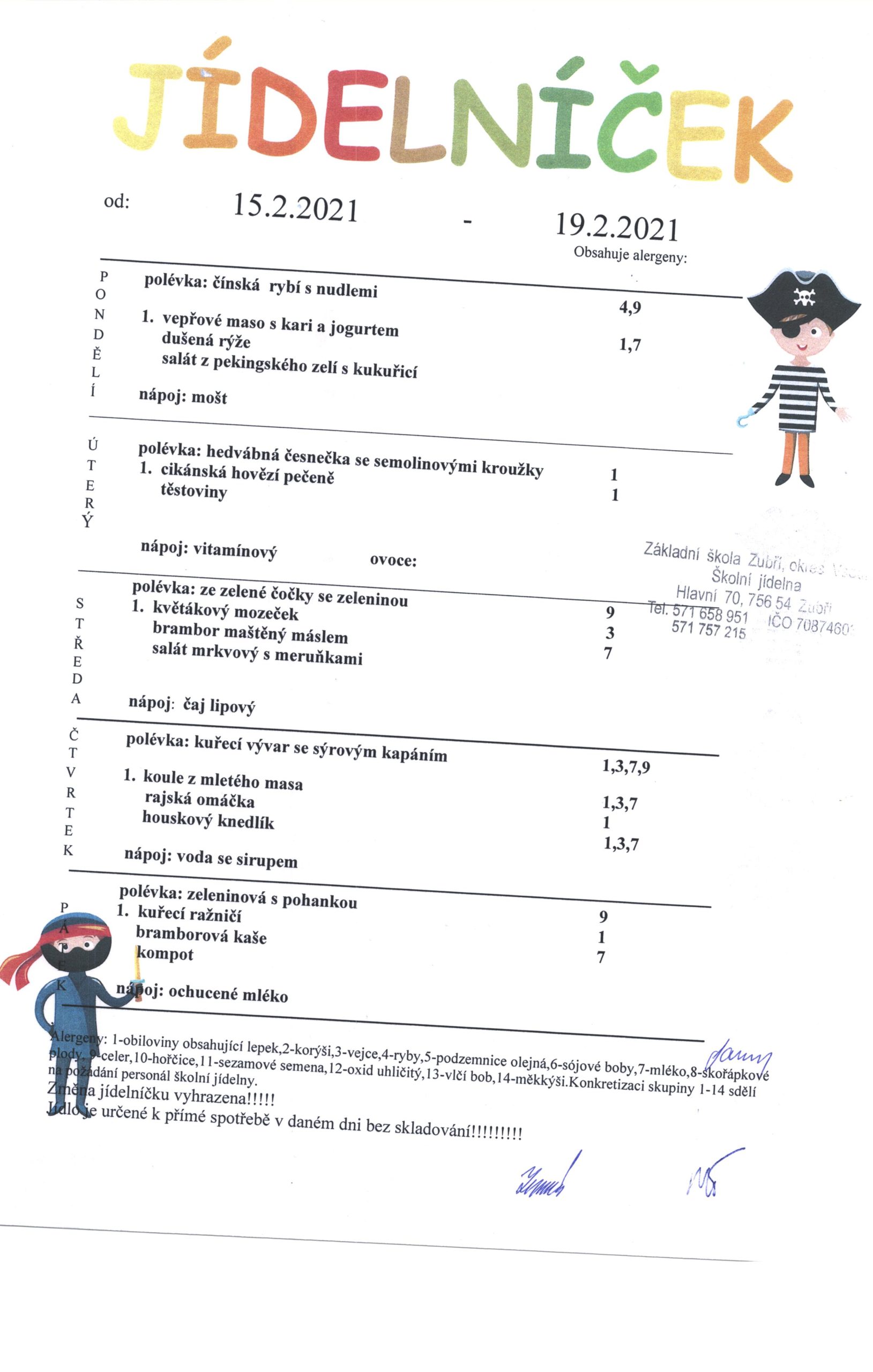 Jídelníček od 15.2.-19.2.2020
