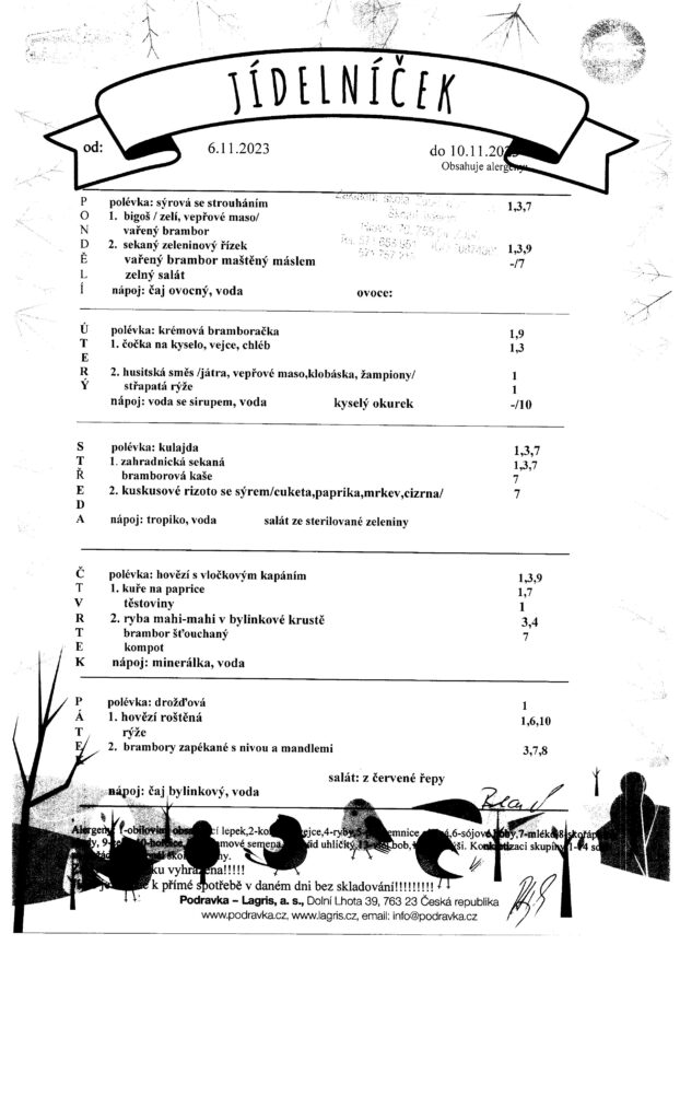 Jídelníček od 6.11.2023-10.11.2023