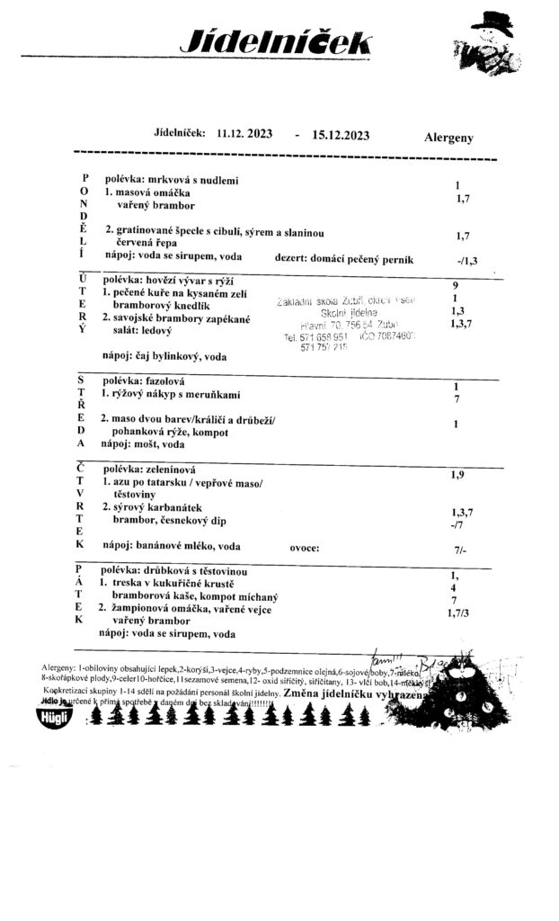 Jídelníček od 11.12.2023-15.12.2023