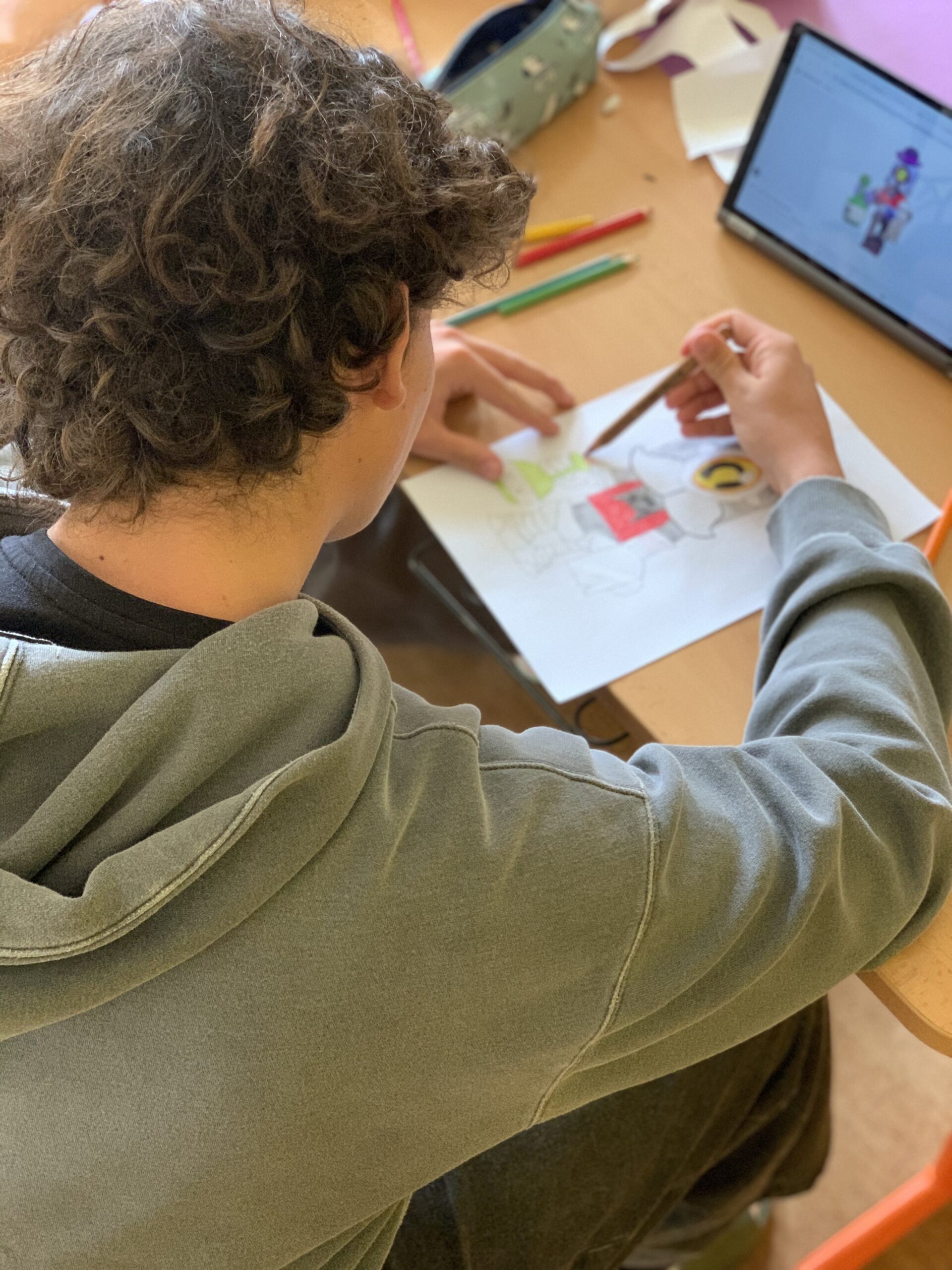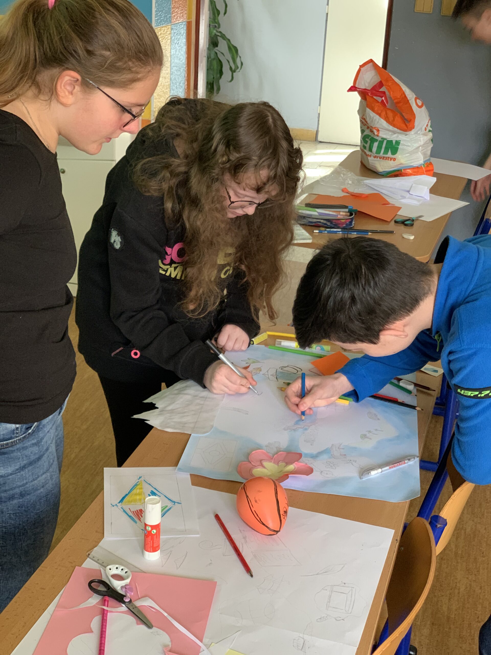 Nejdříve se žáci ve skupině seznámili a pak společnými silami začali tvořit a vymýšlet, jak by takové místo mohlo vypadat a co všechno by na daném místě mohlo být. Nápadů bylo opravdu mnoho a grafické zpracování se dětem velmi povedlo. Na závěr sestavili stroj (papírovou vlaštovku), který je na dané místo dopravil, to se naštěstí všem podařilo.