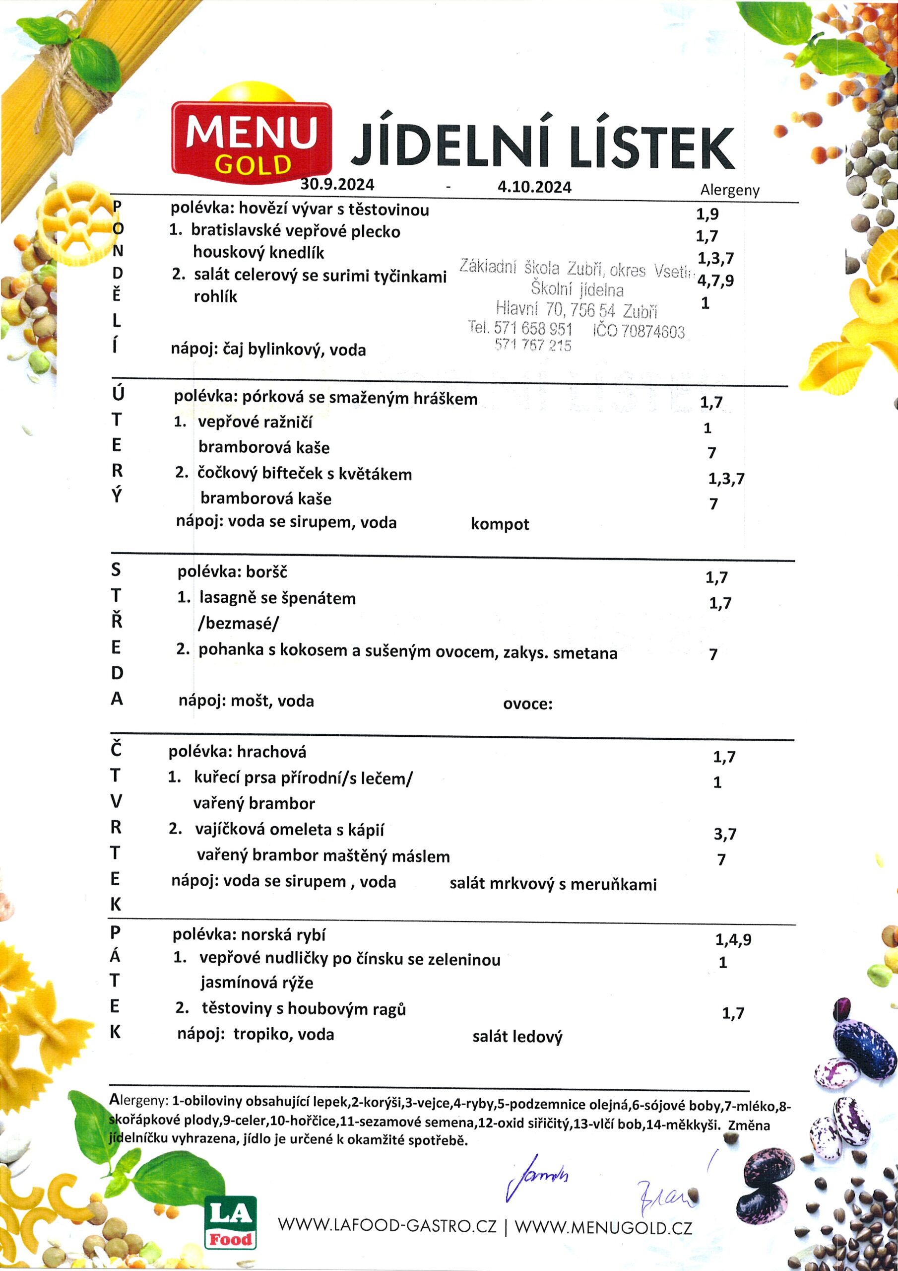 Jídelníček od 30.9.2024 – do 4.10.2024