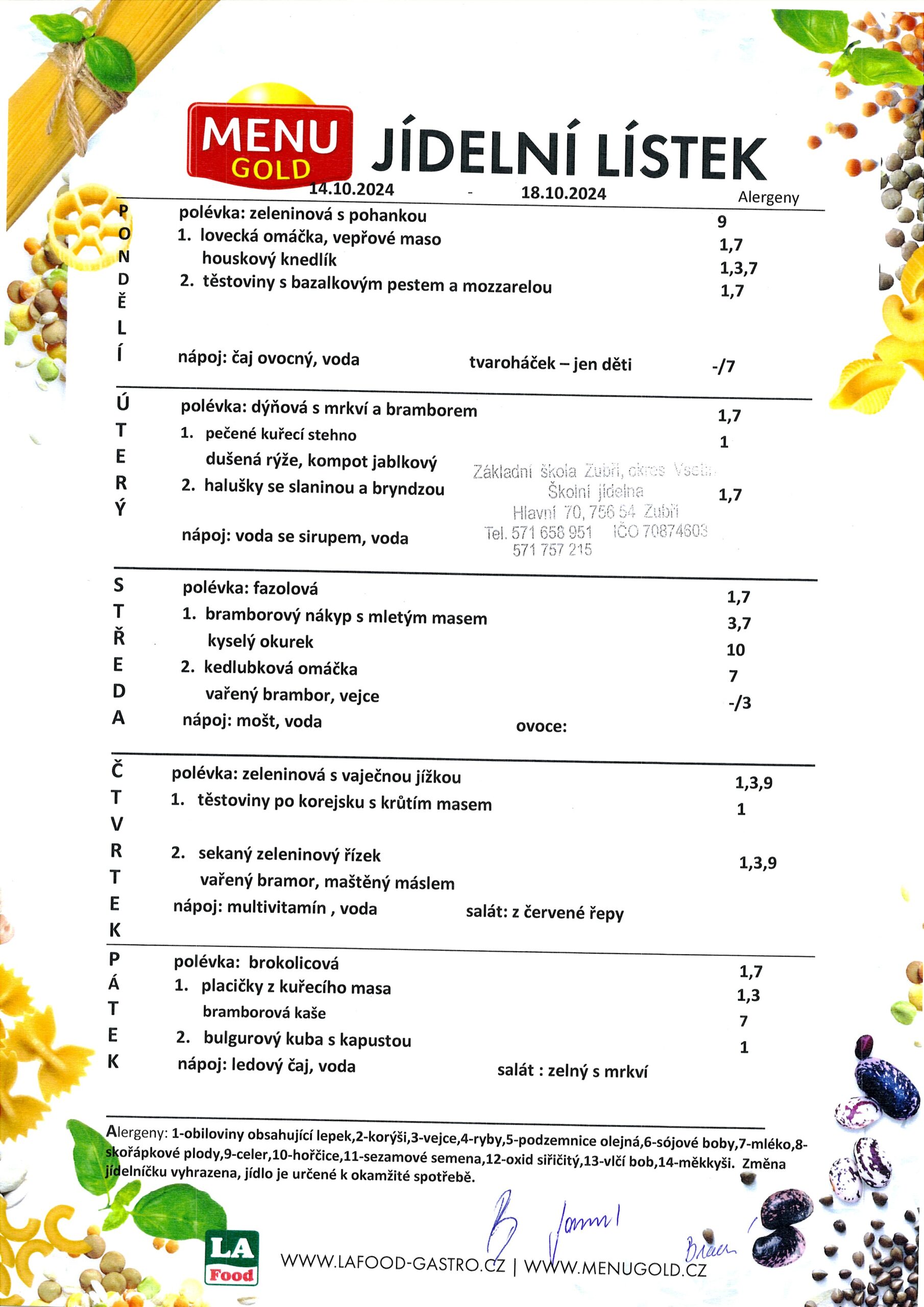 Jídelníček od 14.10.2024-18.10.2024