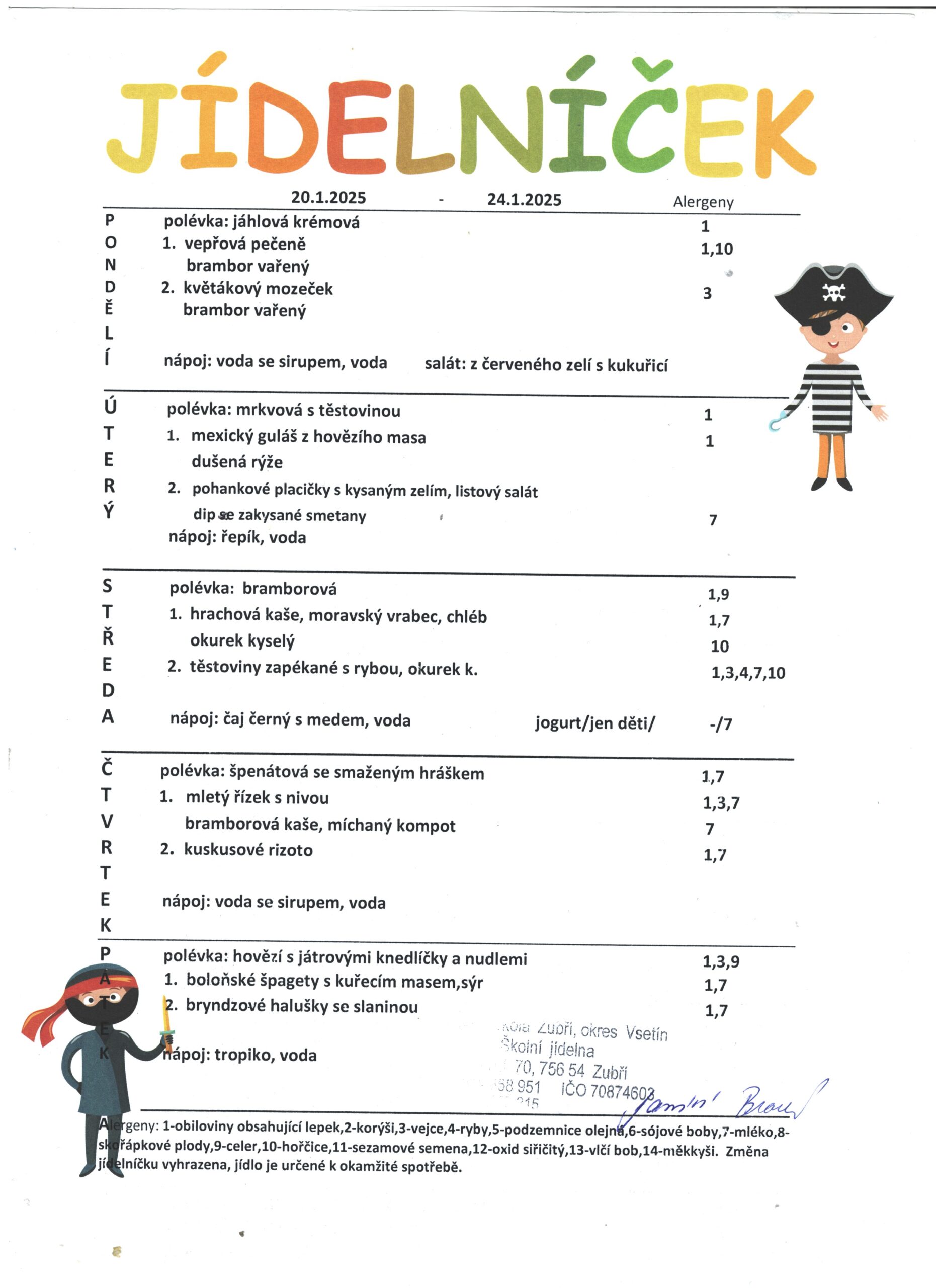 Jídelníček od 20.1.2025-24.1.2025