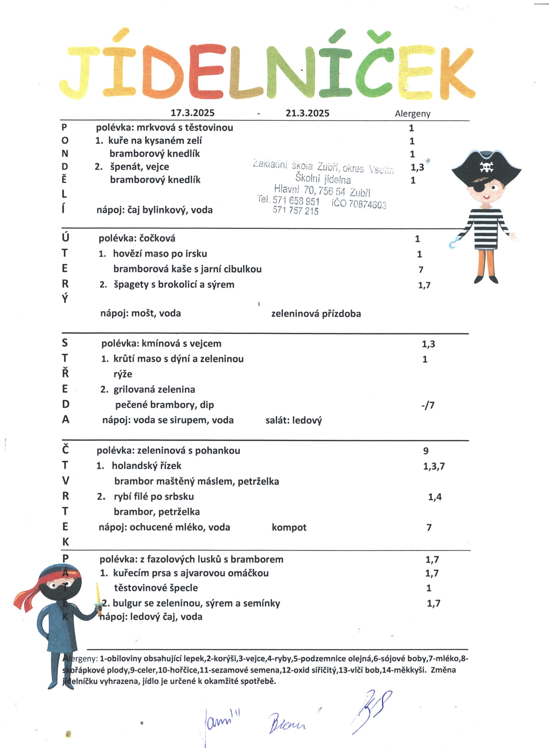 Jídelníček od 17.3.2025-21.3.2025