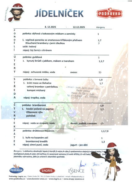 Jídelníček od 8.12.2025 – 12.12.2025