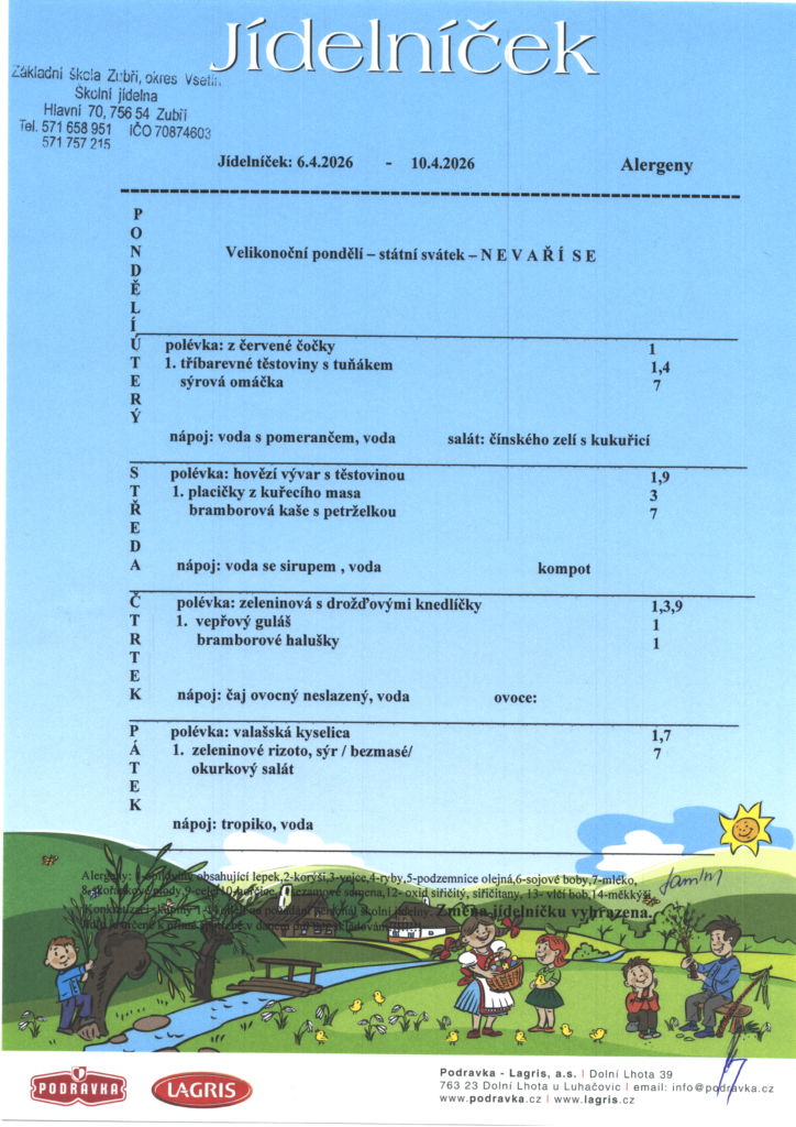 Jídelníček od 6.4.2025-10.4.2025